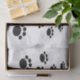 Belle bande dessinée en noir. Des pattes gris clair dans l'arrière - plan. Papier de tissu customisé pour cadeaux. Idée d'enveloppement cadeau pour les propriétaires de chiens et leurs chiens.