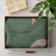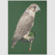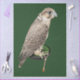A real photo of a hunting falcon sitting on a stand on a dark green background decoupage tissue paper.