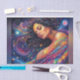 Élégez votre prochain projet créatif avec ce papier de découpage magique et dynamique. Doté d'une déesse sereine les yeux fermés, enveloppé d'une couverture d'étoiles étincelantes, ce design explose de couleur dans un style fantaisiste et imprégné d'arc-en-ciel qui rappelle les années 90. Parfait pour ajouter une touche ludique et céleste à votre artisanat, ce papier découpage inspirera votre créativité.