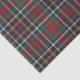 This elegant and contemporary gift wrapping tissue paper showcases a plaid pattern in shades of green, dark blue, and red, creating a classy and nostalgic English holiday atmosphere. The paper is perfect for wrapping Christmas gifts in a classic colonial style and complements a charming country cottage or log cabin theme.