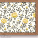 Papier Mousseline Roses jaune pâle avec feuilles gris blanc