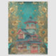 Papier Mousseline Shabby Chic Pagode Florale Turquoise