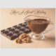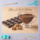 A bar of chocolate, a bowl of sweet chocolate paste and a few raw nuts on a delicate beige background with personalized text: "Have A Sweet Holiday" decoupage tissue paper.