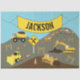 Belle illustration d'un chantier de construction et de camions. Les véhicules de transport de camions de construction comprennent camion à benne, pelle, backhoe, bulldozer, grue et chargeuse frontale. Le design parfait pour les camions, les passionnés de machines lourdes garçons et filles. Cadeau de Noël idéal, cadeau d'anniversaire, décoration de garderie, art de chambre pour enfants, décoration de maison ou de retour à l'école. Customisez le nom et faites-le vous-même.