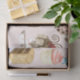 Des gâteries sucrées avec une tour de cupcakes, gâteaux et chocolats faits main et le texte typographique qui dit : "Tant de desserts, si peu de temps !" Peint en aquarelle et conçu en un motif à demi-goutte qui est entièrement extensible. Arrière - plan rose pâle et doux avec des arroses blanches. Toutes les oeuvres ont été dessinées graphiquement par Audrey Jeanne Roberts, artiste et designer de renommée internationale, copyright.