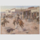 Charles (CM) Russell, le "cowboy artiste", a créé plus de 2 000 peintures de cowboys, indiens et paysages dans l'ouest des États-Unis. Il vécut et travailla parmi les cowboys et la tribu des Blood Indian dans ses plus jeunes années. Ce tableau est "Une journée tranquille à Utica".