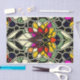 Un design numérique de style art déco qui intègre des éléments de vitrail et des lignes géométriques. L'inclusion d'une fleur de lotus dans le design ajoute une touche de nature et de tranquillité, tandis que la composition symétrique crée un sentiment d'équilibre et d'ordre.