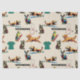 Vétérinaire motif avec chiens, chats, furets, lapins, perroquets, examens médicaux et stéthoscopes.