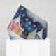 Un imprimé doux et coloré pour enchanter les enfants - un village pittoresque aux couleurs pastel dans une tempête de neige bleue de minuit. Image transparente.