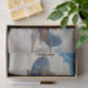 Detailed steampunk airship set against soft sky blues and faded engineering sketches. Rich navy, copper, and rust tones with mechanical textures give this design an industrial vintage feel.