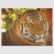 Voici une superbe photo d'un tigre majestueux dans le refuge animalier Animal Ark au nord de Reno Nevada. Un beau grand chat, jaune-orange avec des rayures noires. Un beau portrait royal de ce mammifère sibérien.