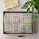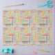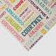 Créez un papier de tissu très personnalisé. Votre nom personnalisé apparaît sur tout ce papier dans un collage de polices et de styles de lettres différents. Le lettrage turquoise, vert menthe, bleu et jaune est placé contre un arrière - plan bleu marine. Ce style convient parfaitement aux noms de longueur moyenne de 5 à 8 lettres pour des noms plus courts ou plus longs, voir les autres modèles de cette collection.