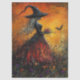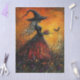 Papier Mousseline Wicked Witch in Red with Her Bat Decoupage