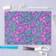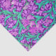 Papier tissulaire dans un William Morris, Art Nouveau, imprimé textile d'iris et de feuilles, numériquement rehaussé et coloré, dans une orchidée douce et turquoise, sur un améthyste profond violet arrière - plan