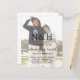 Faire-part de mariage économique moderne avec un design simple et minimal noir et blanc avec votre monogramme en caractères gras avec vos noms dans un élégant script d'écriture sur votre photo préférée. Le dos contient vos détails supplémentaires et le code QR facultatif (si vous le préférez, vous pouvez supprimer le code QR dans l'outil d'édition de conception).