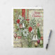 Key elements include a lovely Nativity scene silhouette, a small Christmas tree, and hanging ornaments. The top right corner prominently displays the script "Merry Christmas" in festive red.
