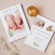 Cette faire-part de naissance simple et élégante est décorée sur le thème de la verdure d'eucalyptus. Personnalisez avec 1 photo sur le devant et 2 photos sur le dos avec toutes les informations sur votre état de naissance.