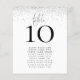 Une taille de 4,5 x 5,6 pouces semi-brillant poids 110 livres, qui est d'une épaisseur similaire à une carte postale, avec ONE par feuille. Numéro de table du Mariage du script de Parties scintillant en argent. Un design élégant avec table dans un script de style manuscrit et votre numéro de table sous et les noms des invités sur cette table. Personnalisez facilement le numéro et les noms. Une bordure en faux parties scintillant argenté longe le bord supérieur. La même conception est de l'autre côté et les deux côtés se mettent à jour simultanément lorsque vous effectuez vos modifications.