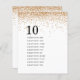 Numéro de table Gold Parties scintillant Guest Names. Une taille de 4,5 x 5,6 pouces semi-brillant poids 110 livres, qui est d'une épaisseur similaire à une carte postale, avec ONE par feuille. Style contemporain simple avec le numéro de table plus grand en minuscules élégantes et vos noms d'invités pour la table en dessous et beaucoup d'espace blanc avec une bordure de parties scintillant en faux or au sommet. Personnalisez facilement le texte à vos propres détails. Le même design se trouve à l'arrière