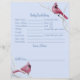 Demandez à vos invités de baby shower de remplir cette mignonne carte de prédictions et de conseils pour bébé qui présente des illustrations d'aquarelle peintes à la main et de mignonnes illustrations d'oiseaux cardinaux rouges assis sur des branches d'arbres blancs par OhMyStarling. Cette adorable carte de conseil à thème ornithologique de bois d'hiver cardinal fait pour un gardien merveilleux et est une activité amusante pour votre baby shower à thème cardinal de Noël! Le dos de cette carte est orné d'une aquarelle peinte à la main, qui reproduit le motif des cardinaux rouges et des branches d'arbres. Grande palette de couleurs gris et bleu pour les baby showers et fêtes d'oiseaux d'hiver.