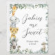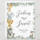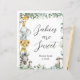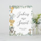 Personnalisez facilement et rapidement cet écriteau de table de fête de bébé animaux de jungle de verdure convivial et économique. Cliquez simplement sur le bouton Personnaliser pour modifier les textes, changer les polices et les couleurs de police. Comprend des animaux de jungle de safari à l'aquarelle et une couronne de verdure chic.