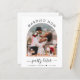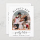 Un hébergement abordable ou un petit faire-part mariage pour informer la famille et les amis que vos plans de mariage ont changé et que vous avez quitté ou réduit le nombre d'invités de votre mariage à un petit groupe intime, et que vous allez accueillir une fête à l'avenir. L'avant présente votre photo dans un cadre voûté et "Marié maintenant, Parti plus tard" dans un mélange de typographie moderne et de script tendance. Sous votre photo, vous pouvez ajouter vos prénoms et votre date de mariage. Au verso, vous pouvez personnaliser votre message plus en détail et ajouter vos noms dans un script de type signature.