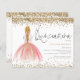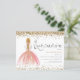 Parties scintillant Blonde Pink Gown Quinceanera Invitation. Un prix économique PETIT 4,5 po x 5,6 po alternatif. Disponible dans un STOCK CARTE SEMI GLOSS 110 lb qui est l'option par défaut (plus épais pour les invitations), OU un STOCK PAPIER THINNER SATIN FINISH 80 lb (idéal pour les enceintes). Les enveloppes sont en option et légèrement plus grandes que la taille de la carte. Elégance brillante pour votre Quinceanera avec une illustration de la vue arrière d'une fille aux cheveux tressés blonds dans une belle robe rose boule et parties scintillant d'or bordant le haut et le bas de chaque côté. L'en-tête principal est dans un script de style manuscrit et personnalise facilement le reste du texte à vos détails.