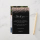Une taille PLUS GRANDE 5,5" x 8,5" à un prix abordable, sur un élégant stock LINEN de 110 lb - pour un sentiment de luxe à un bon rapport qualité-prix, c'est parfait pour les invitations, menus, programmes, etc. Cette alternative de taille budgétaire est également disponible dans d'autres choix de papier. Le stock de carte SEMI-GLOSS 110 lb est à peu près de la même épaisseur qu'une carte postale, donc fonctionne bien aussi pour les invitations. Le papier FELT 100 lbs est de couleur bouffante, PAS blanc, donc ajoute une touche rustique. Le stock de papier MATTE 80lbs est blanc vif, pour une impression nette, idéal pour vos menus et programmes, tandis que le papier SATIN 80lbs est mince et léger, idéal pour les enceintes. VEUILLEZ NOTER QUE LES ENVELOPPES OPTIONNELLES SONT UN PEU PLUS GRANDES EN TAILLE À 6,75" x 9" env. Budget Rose Parties scintillant or Fête des mariées photo Merci noir. Une bordure de parties scintillant en or rose est en haut, et le Merci est dans un script de style manuscrit en rose poussiéreux. Personnalisez facilement le texte à vos propres détails. Sur le dos swap dans votre photo préférée de votre douche d'orientation portrait.