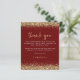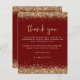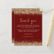 Un rapport qualité-prix BUDGET alternative sur une taille plus petite 4,5 x 5,6" semi-brillant poids 110lbs, qui est d'une épaisseur similaire à une carte postale (cependant ne convient pas à l'utilisation comme carte postale.) VEUILLEZ NOTER qu'il y a UN invitation par feuille. Parties scintillant d'or rouge sang Vingt premier Merci. Les bordures de fausse parties scintillant d'or sont en haut et en bas de chaque côté sur le noir classique, et le Merci est dans un script de style manuscrit dans la coordination de l'or. Personnalisez facilement le reste du texte. Vous pouvez également modifier le texte et les couleurs arrière - plans via l'option customiser plus si vous le souhaitez.