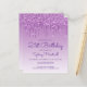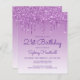 Cette invitation branchée à la fête du 21e anniversaire présente une bordure brillante de faux parties scintillant violet et un arrière - plan violet sombre. Les mots "18ème anniversaire" et le nom de l'invité d'honneur apparaissent dans un script décontracté d'écriture violet, le reste du texte personnalisable dans la police sans serif. La même conception de goutte de parties scintillant violette apparaît à l'envers.