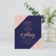 Rose Gold parties scintillant couleur bloc typographie sur personnalisable marine bleu et faux rose or géométrique bandes mariage chic, parfait pour élégant, luxueux mariage, mariage économique abordable.