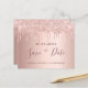 Une petite fille et tendance Enregistrer la carte Date pour une Quinceañera, 15e anniversaire fête. Un arrière - plan rose à l'aspect faux métallique orné de parties scintillant en or faux rose. Modèles pour une date, un nom et un texte. Lettres de couleur or rose foncé. Le texte : Save the Date est écrit avec un grand script de style à la main tendance.