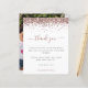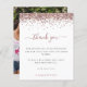 Parties scintillant rose Photo Merci du parti Hen. Un prix économique PETIT 4,5 po x 5,6 po alternatif. Disponible dans un STOCK SEMI-GLOSS 110 lb CARD qui est l'option par défaut (plus épais pour les invitations), OU un STOCK SATIN FINISH 80 lb THINNER PAPER (idéal pour les boîtiers). Les enveloppes sont en option et légèrement plus grandes que la taille de la carte. Une bordure de parties scintillant en or rose est en haut, et le Merci est dans un script de style manuscrit en rose poussiéreux. Personnalisez facilement le texte à vos propres détails. Sur le dos swap dans votre photo préférée de votre douche d'orientation portrait.