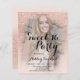 Une douche à parties scintillant en or faux rose moderne, assez chic et élégant ombre avec votre photo avec bloc de couleur rose pastel blush pâle 16 anniversaire invitation à la fête avec or rose ombre motif se fondant sur un arrière - plan rose avec et élégant cadre en or rose abordable à bas budget fête.
