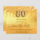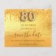 Une petite fille et tendance Enregistrer la carte Date pour une fête de 80e anniversaire. Un arrière - plan moderne à l'allure fausse or décoré avec des gouttes de parties scintillant, la peinture goutte à goutte. Personnalisez et ajoutez une date et un nom. Le texte : Save the Date est écrit avec un grand script de style à la main tendance. Numéro 80 avec une police de style ballon.