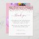 Parties scintillant rose Photo Sweet 16 Merci. Un prix économique PETIT 4,5 po x 5,6 po alternatif. Disponible dans un STOCK SEMI-GLOSS 110 lb CARD qui est l'option par défaut (plus épais pour les invitations), OU un STOCK SATIN FINISH 80 lb THINNER PAPER (idéal pour les boîtiers). Les enveloppes sont en option et légèrement plus grandes que la taille de la carte. Après votre célébration, voici une façon élégante de dire tous ces remerciements importants. Une fausse parties scintillant en rose borde le sommet, et le Merci est dans un script élégant avec des swashes. Personnalisez facilement les mots à votre façon. Sur le dos échange dans votre photo préférée de votre parti d'orientation portrait.