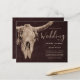 Invitation vos invités à votre journée spéciale avec ces invitations de mariage budget rodeo bull de la ferme de l'ouest. Arrière - plan de texture brun rustique pour customiser vos informations sur. Copyright de l'image Marg Seregelyi Photography.