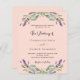 Un arrière - plan tendance couleur pêche décoré de fleurs de lavande et de verdure d'eucalyptus. Personnalisez et vos noms et détails. 1 feuille = 1 invite imprimé bord à bord.
