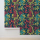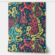 Cette oeuvre présente un motif abstrait dynamique et énergique rempli de formes fluides et organiques et de couleurs audacieuses et contrastées. La composition est dominée par des formes tourbillonnantes en rouge, jaune, turquoise et bleu foncé, créant un sentiment de mouvement et de dynamisme. Les détails complexes et les lignes variées confèrent à la pièce une qualité ludique, presque hypnotique, qui rappelle les années 60 et les années 70 art psychédélique. Le design est à la fois chaotique et harmonieux, attirant le spectateur dans son monde complexe et immersif.