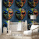 The African Tribal Mask Cubism Abstract WallpPer is a vibrant artwork which showcases a stylized African tribal mask with a symmetrical design divided into four color zones: green, blue, yellow, and red. Geometric patterns enhance each section, while deep-set eyes and a polished finish add depth. Set against a dark blue--green textured background, the piece radiates cultural richness and bold artistry. The African Tribal Mask Cubism Abstract Art by Cornell Burnett, Ph.D. , CEO, Founder , Infinity Geometric Art , has been inspired by the historical contributions of Africa to the Cubism Style Art Movement , which led to Cubism being the greatest art style in Contemporary and Modern Art. The African Tribal Mask Cubism Abstract vibrant and dynamic color inter-actions with bold geometric abstractism allows the onlooker to extract the pure essence of the cultural artistry, symbolism, and spirituality heritage of Africa and its contribution to Cubism.