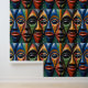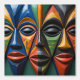 Add a bold statement to your space with this striking artwork featuring three stylized African masks in vibrant, symmetrical harmony. Each elongated mask is adorned with intricate geometric patterns and bathed in rich shades of blue, orange, green, and black. Crafted with a sleek, glossy finish, the surface reflects light beautifully, bringing depth and vibrancy to any room. While the design elements remain consistent across all three masks, each one showcases unique color placements that celebrate individuality within unity. Set against a soft gradient backdrop, this artwork brings cultural richness and visual dynamism into modern interiors. Perfect for collectors, creatives, and lovers of Afrocentric design, this piece adds elegance,