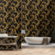 Cet élégant papier peint présente un design rococo vintage en noir et or. Parfait pour un mur d'accent dans votre maison ou votre bureau.