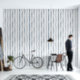 Le papier peint est décoré d'un motif d'aquarelle aux rayures galbées dans les tons bleu ardoise et gris sur le blanc pour un look contemporain.