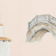 Croquis de bâtiments à Venise en aquarelle style. Design délicat et beau dans n'importe quelle chambre