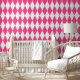 Papier Peint Arlequin rose blanc Diamants Checkers Design
