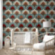Papier Peint Art Deco Cream and Blue Fans