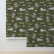 Papier peint avec une drôle d'illustration d'un crocodile mignon, hippo, rhino.