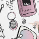 Papier peint avec un motif moderne de divers articles cosmétiques mignons.