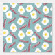Une cuisine amusante sur le thème du bacon et des oeufs sur un arrière - plan vert turquoise, parfait pour votre cuisine, diner ou café. Art original de Nic Squirrell.