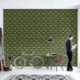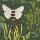 A charming pattern of bees, lush green foliage, and red berries on a dark green background, creating a vibrant and nature-inspired design.